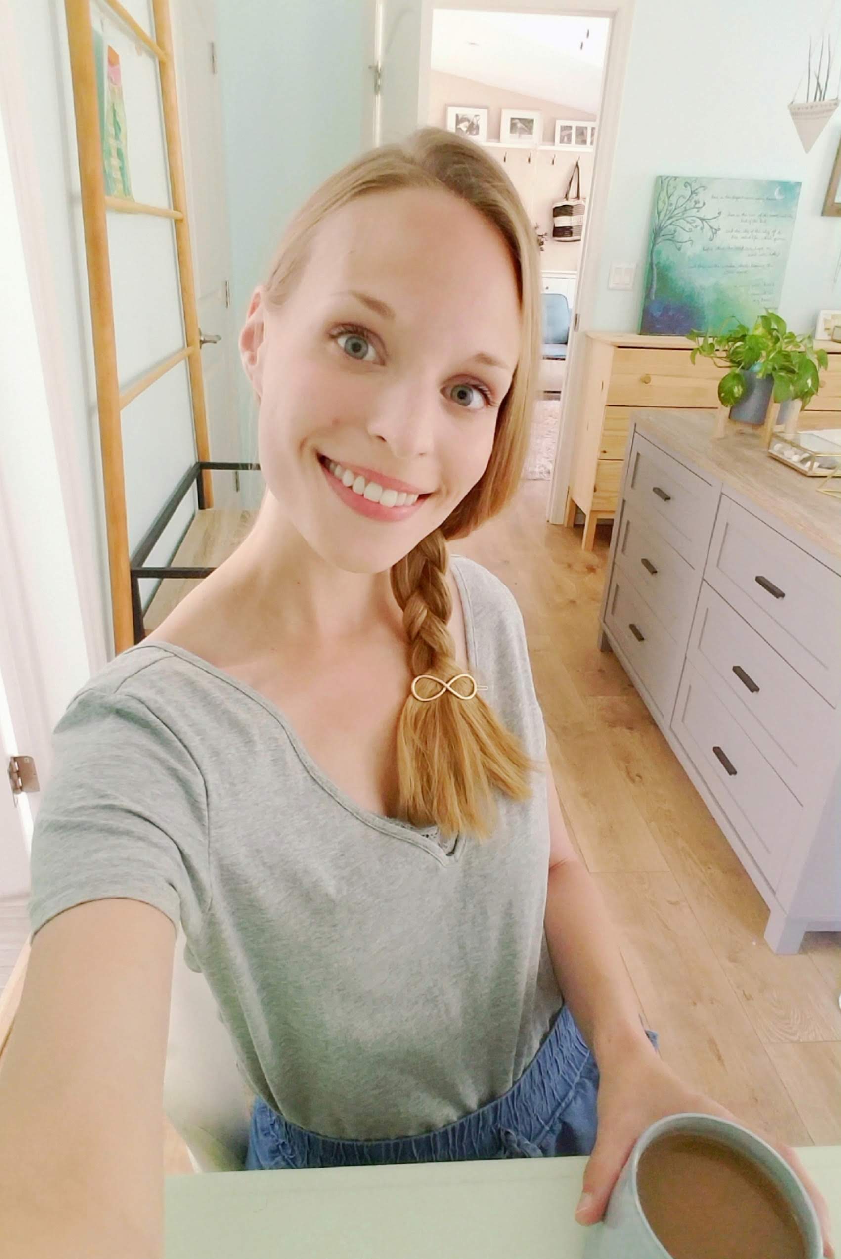 Even if you’re not that into makeup, I still think a desk like this in the bedroom is really useful. It seems like the older I get (or maybe the longer I live in a rural, laid-back community), the less time I’m willing to spend fussing with my hair and makeup. Most of my beauty products fit in a small drawer in the bathroom. I have a feeling that eventually this desk might become a storage space for extra art supplies. (Because I tend to horde that stuff. It’s a bit of a problem). Anyway, a bedroom desk is useful for so many things other than doing your hair/makeup. You can also use it as a quiet space for journaling, having your morning coffee, writing email, storing clothing and accessories, taking selfies, writing to-do lists, etc. Most importantly, it’s a place that you can display textures and colors and memories that bring you joy! If you do this with any space, I promise it will feel like your own natural habitat ❤