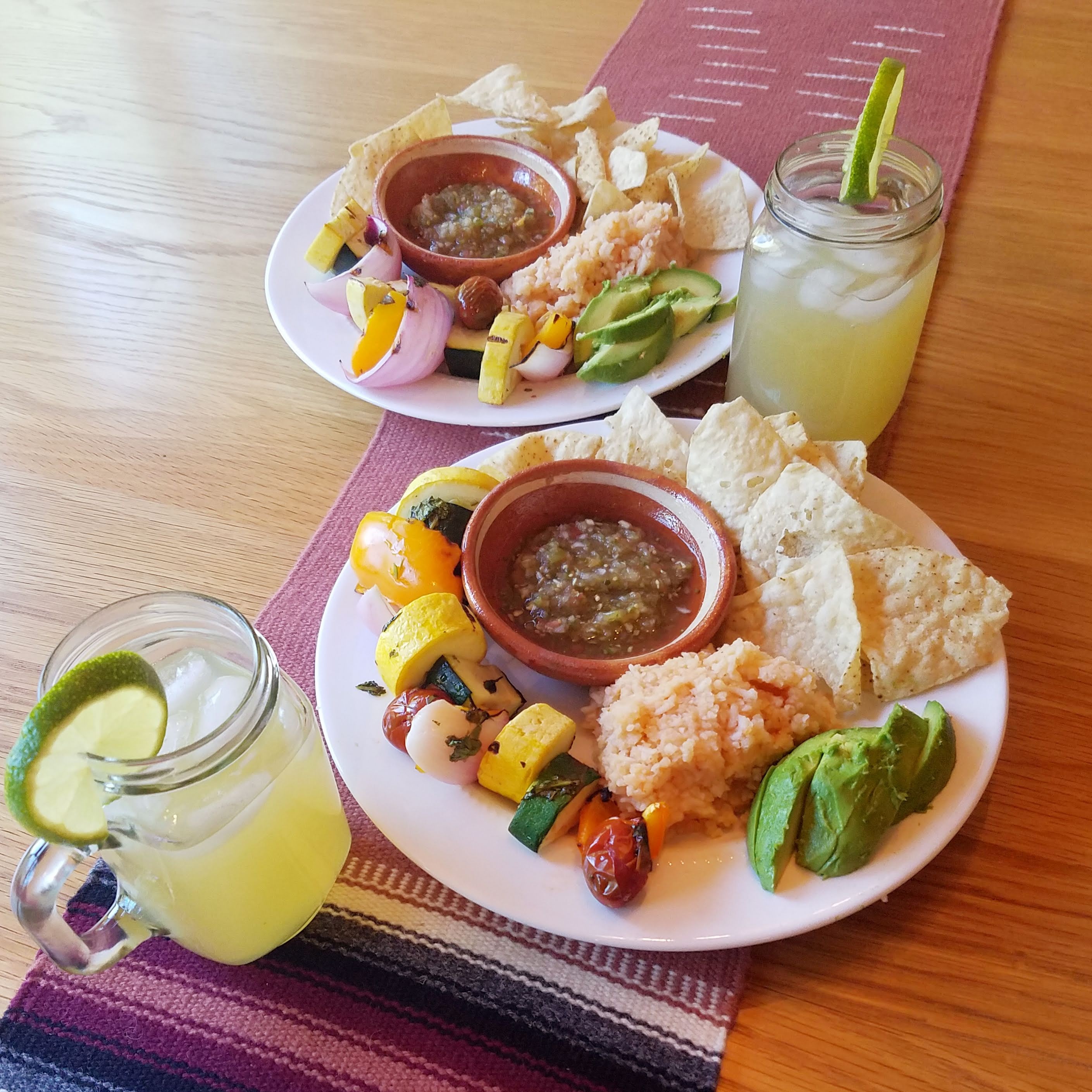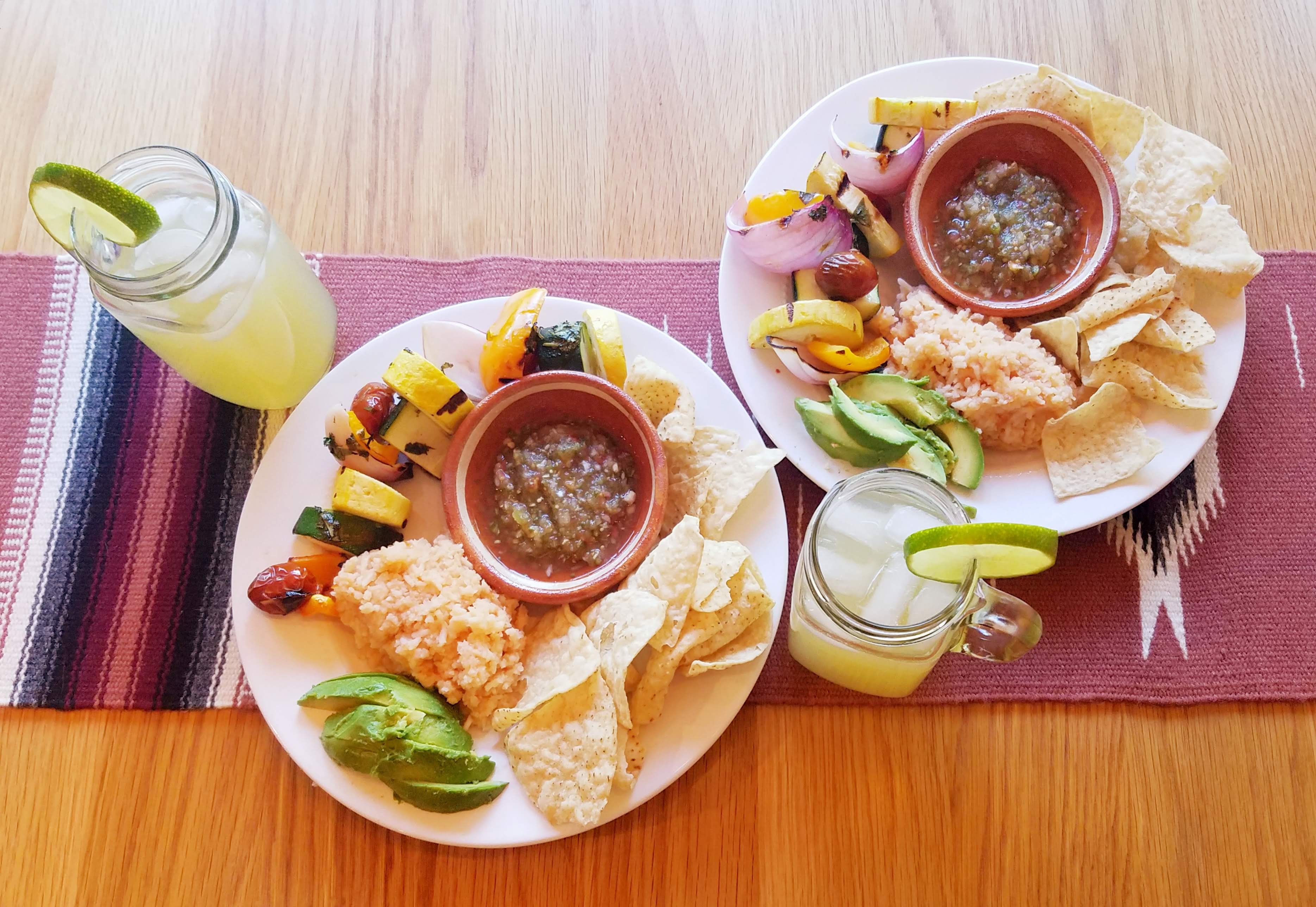 My wife, Clara, is Mexican, and we are also vegetarian. These are not two things that are always easy to reconcile. Her mom is an amazing cook and makes lots of authentic Mexican food, the recipes for which have been passed down through generations of oral tradition. (Clara has tried to get her to write some of the recipes down, but she just laughs. Because that is just not how things are done). Gathering together to eat good food is a really big part of our family culture. But most of the home-cooked meals that Clara grew up eating were meat-based. My in-laws are so kind about making sure I always have a good vegetarian dish to eat at family gatherings. But at home we have to get a little bit creative when we’re feeling like eating Mexican food. During the summer, grilled vebabs, as we call them (veggie kebabs), are delicious as a fajita filling or alongside some Mexican rice and chips and salsa.