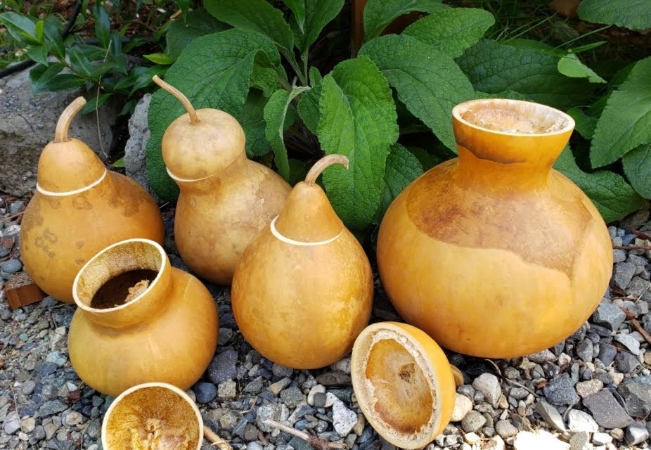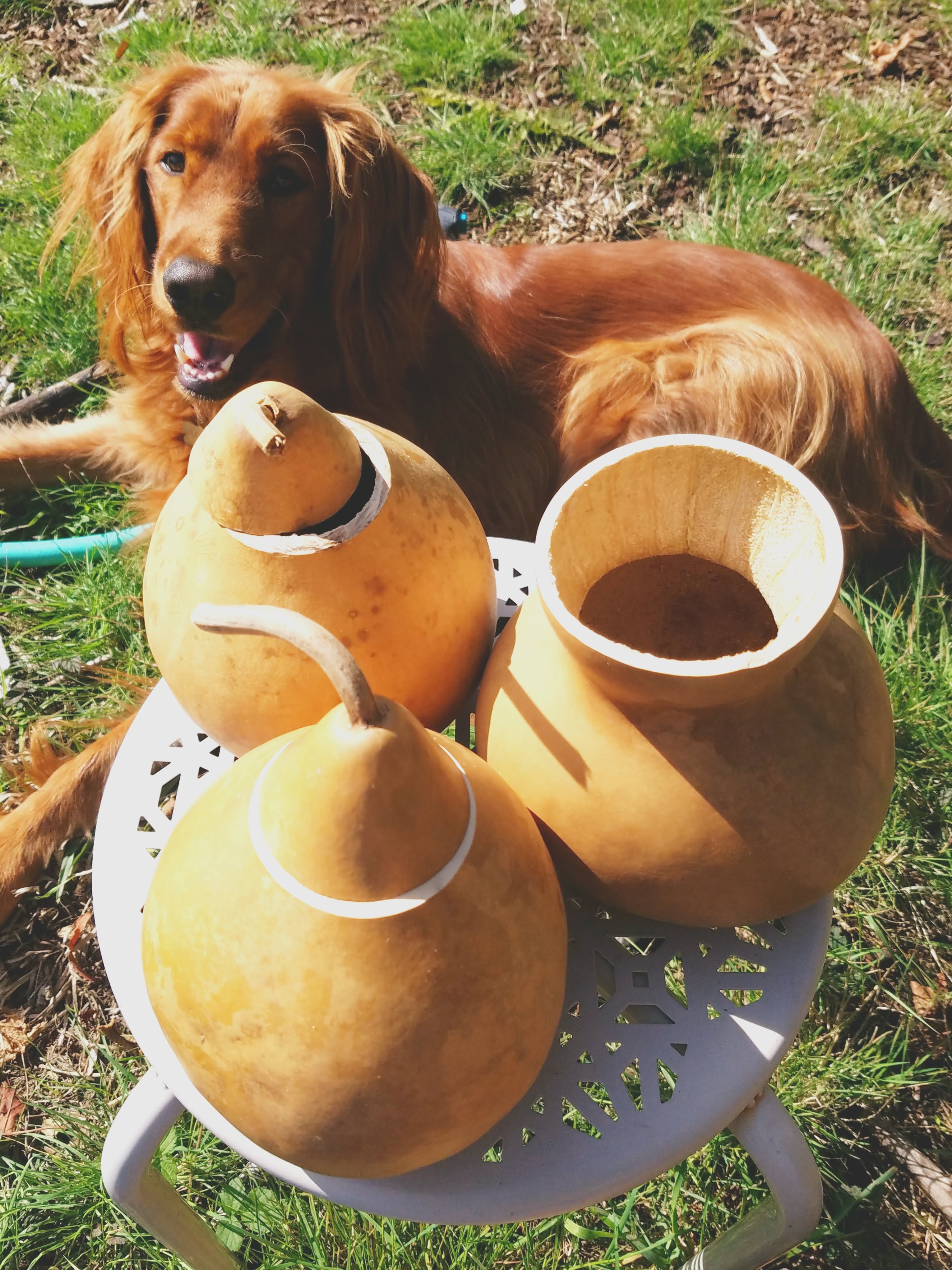 Dried gourds, 5 to 8 inches in diameter (I purchased mine here)