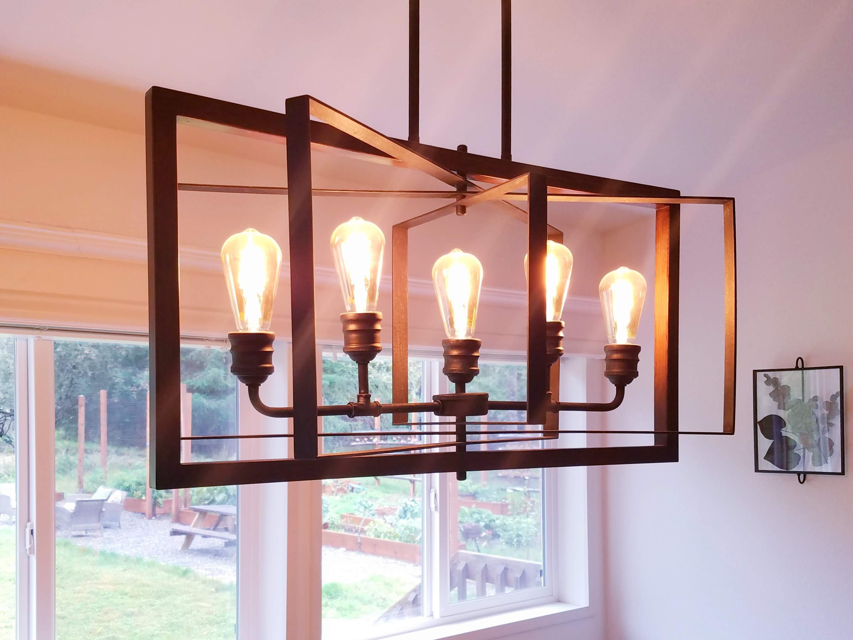 Unfortunately, our home came with ugly builder-grade light fixtures in every room. This industrial chandelier was our first attempt at hardwiring a light fixture, and it was so worth the effort. Installing a dimmer switch ended up being the most difficult part of the project–we accidentally interrupted a circuit and lost the power to half the rooms in our house for a few days (oops). But we were able to conquer this project in the end, and I love the fixture’s rustic metal finish and Edison lightbulbs.
